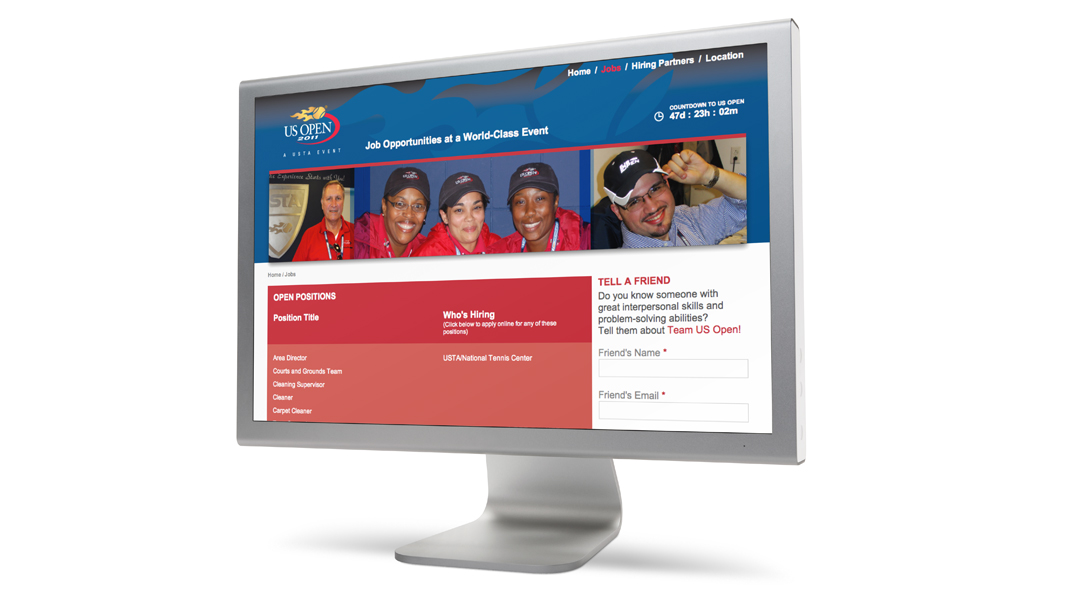 Interactive Registration Website: usopentennisjobs.com, allowing candidates to learn about roles, apply on the spot, and engage with the US Open digitally.
