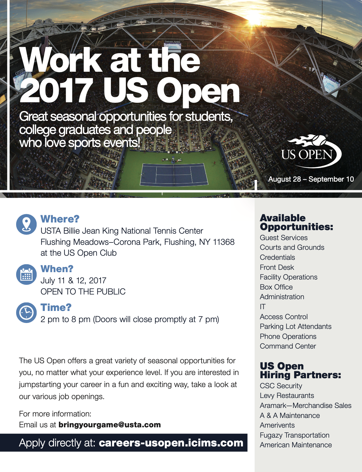 Job Fair Support: Brandemix helped promote the annual US Open Job Fair at Arthur Ashe Stadium, providing candidates with a first-hand, engaging introduction to the event’s employment opportunities.
